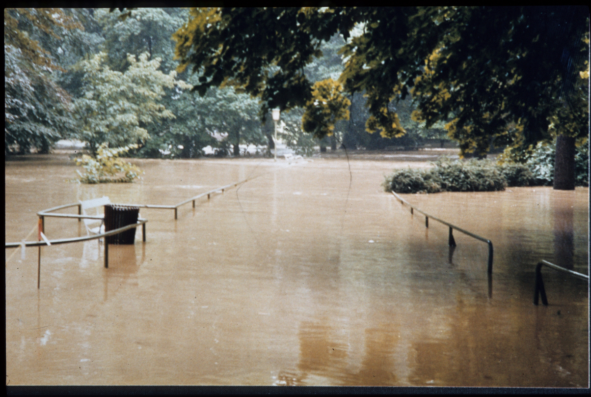 Zu sehen sind die Folgen auch in dem nebenstehenden Bild, welches den Kurpark im Jahr 1981 während des Usa-Hochwassers zeigt.