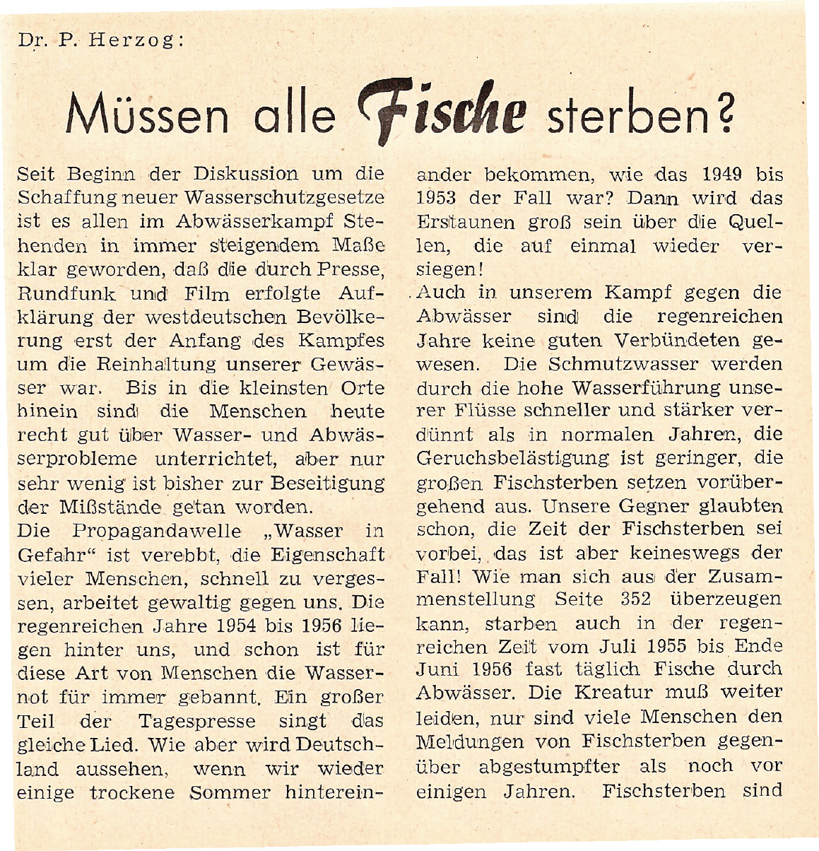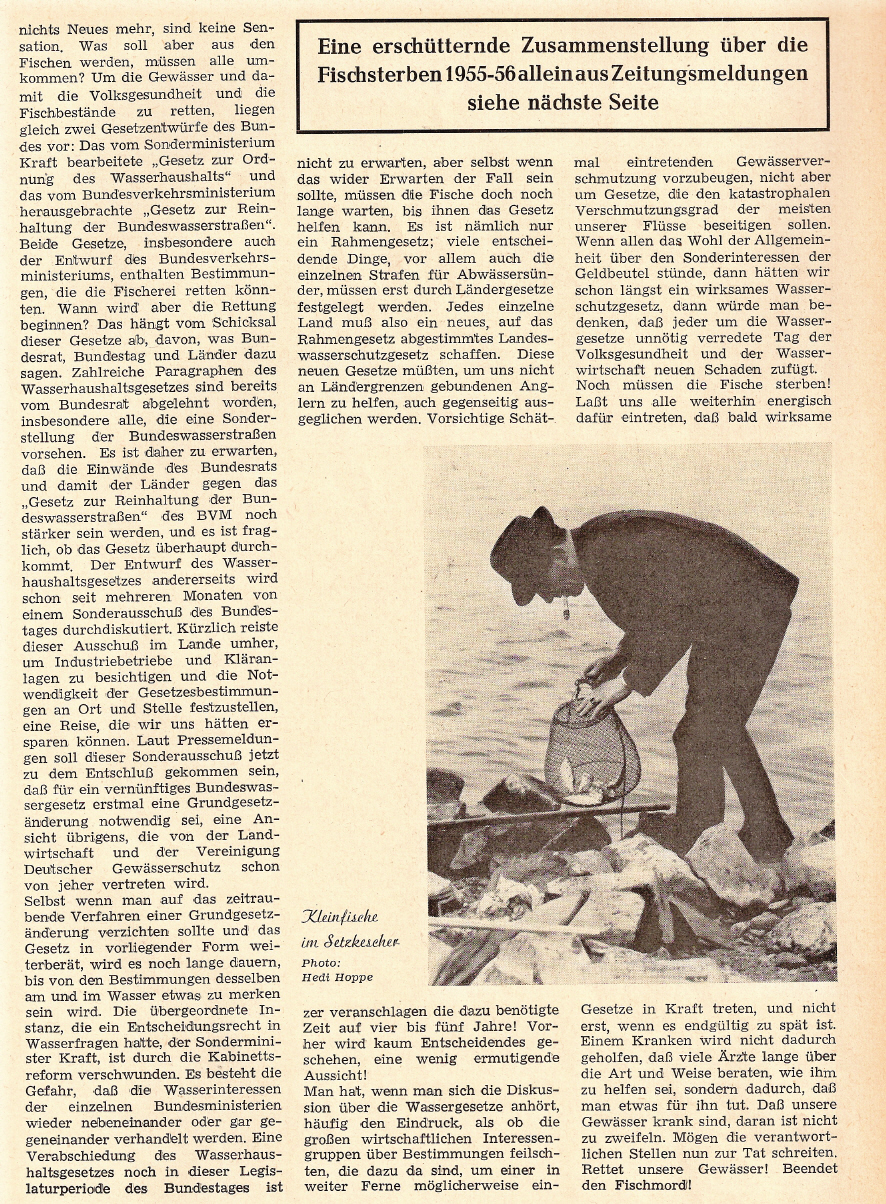 Wie der nebenstehende Artikel aus der Fischwaid zeigt, war Naturschutz bereits vor mehr als 50 Jahren ein Dauerthema.