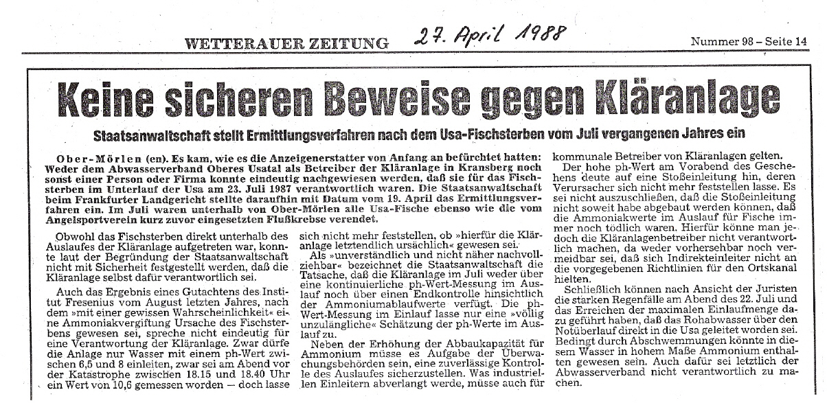 Fischsterben ist auf kriminelle Handlung zurückzuführen