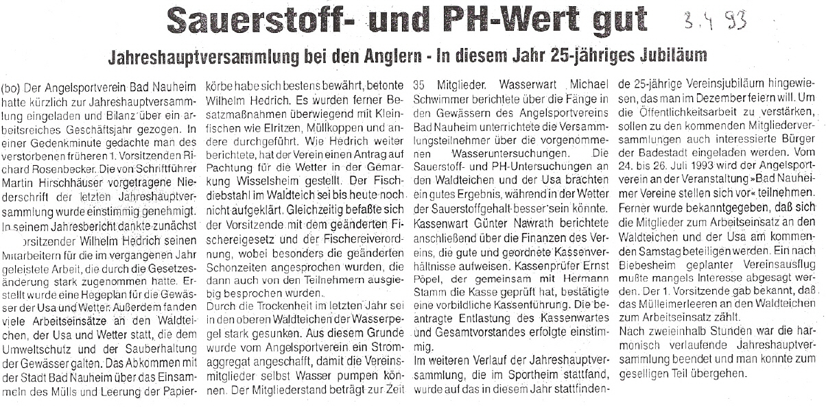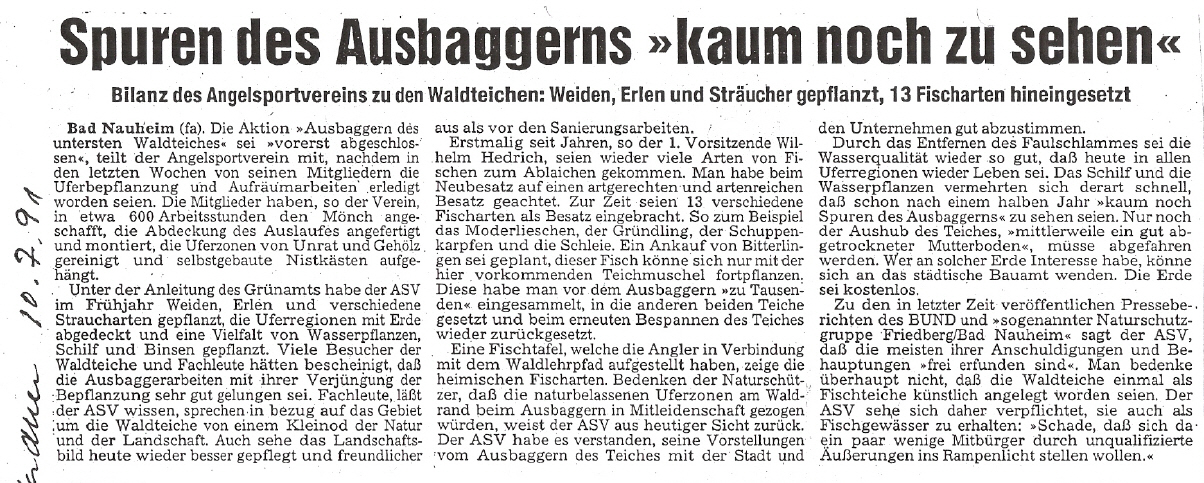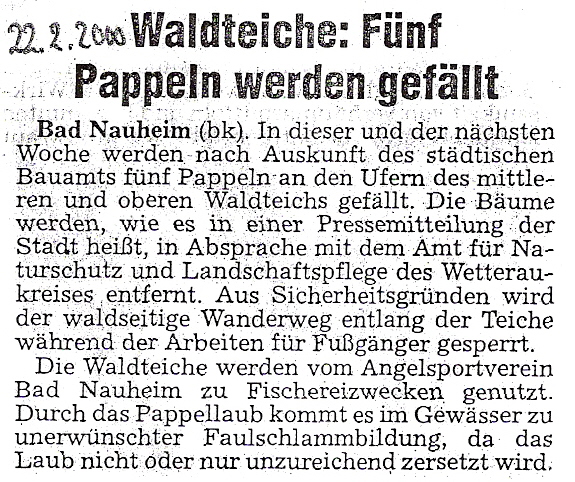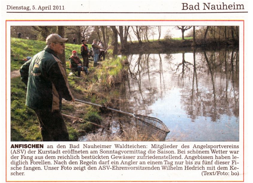 Artikel der WZ vom 04.04.2011 über das Anfischen am Waldteich