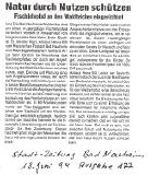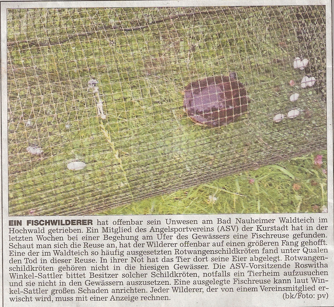 Artikel der WZ über eine qualvoll verendete Wasserschildkröte beim verbotenen Einsatz einer Reuse durch Fischwilderer.