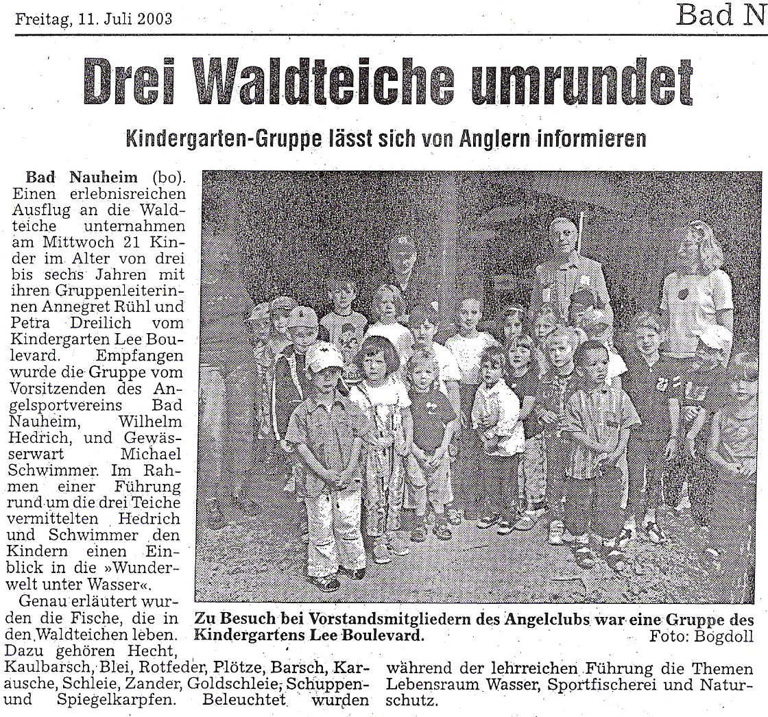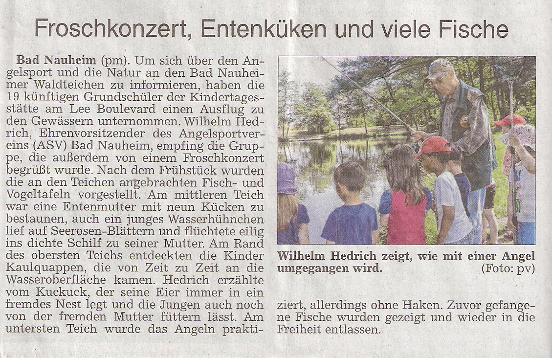 Artikel der WZ vom 05.06.2014 über den Kindergarten Am Lee Boulevard beim Angeln an den Waldteichen