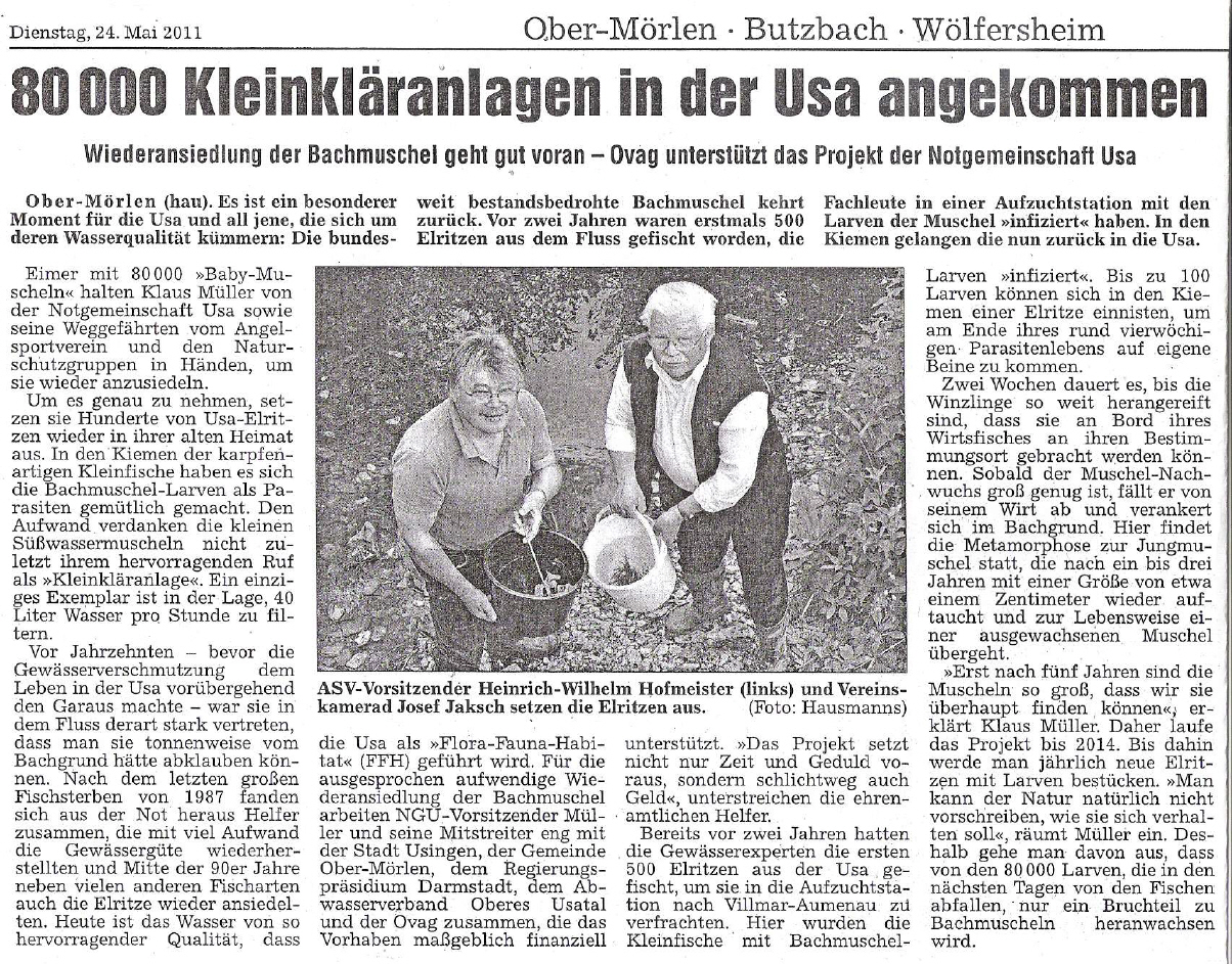 Artikel der WZ über die Bachmuschelaktion 2011.