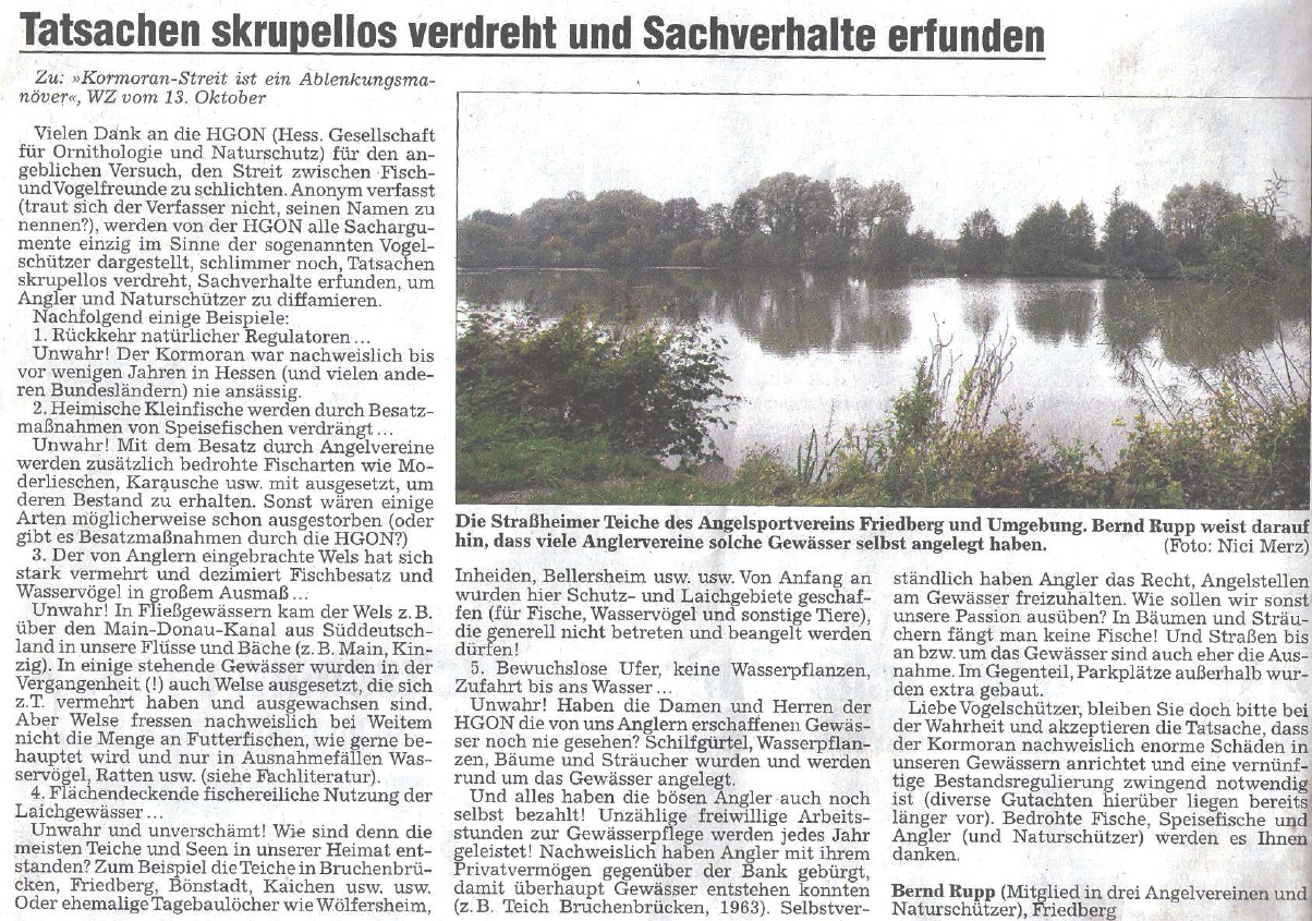 Antwort von Herrn Bernd Rupp auf Presseartikel der Hessischen Gesellschaft für Ornithologie vom 13.10.2010. Meinungstreff WZ 22.10.2010