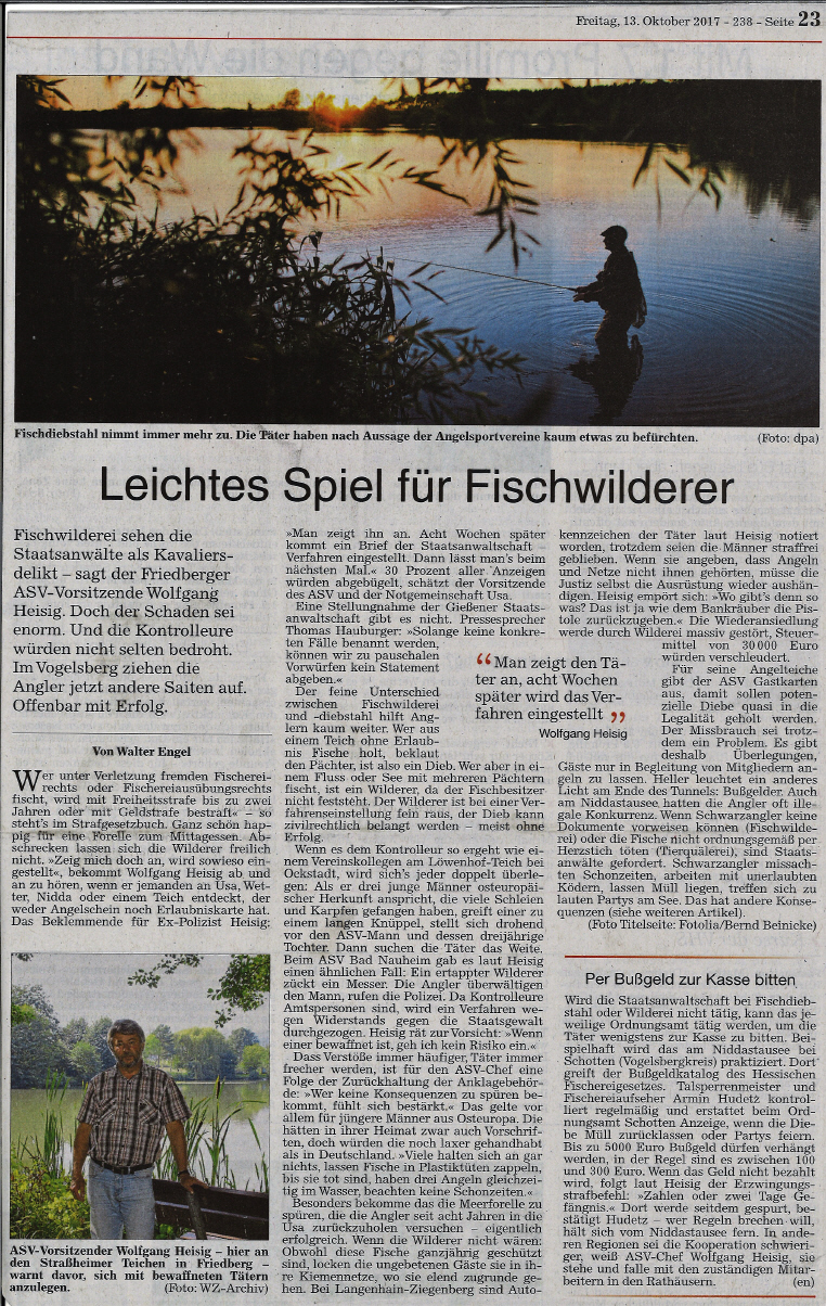 Artikel der WZ vom 13.10.2017 über das Problem mit den Schwarzanglern