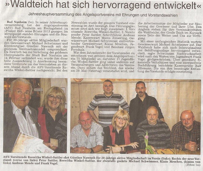 Artikel der WZ über unsere Jahreshauptversammlung 2014