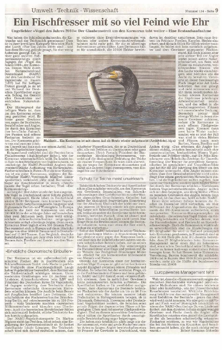Artikel der WZ vom 16.03.2013 über einen Reiher bei der Mahlzeit