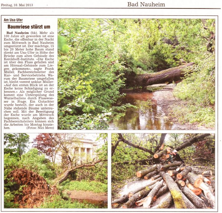 Artikel der WZ vom 10.04.2013 über einen umgefallenen Baum an der Usa