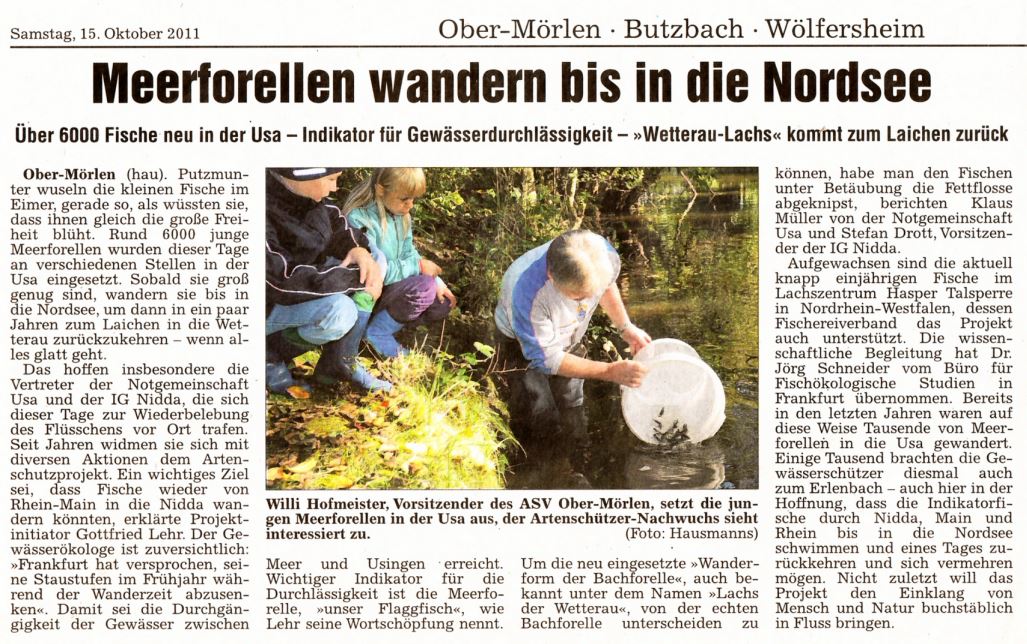 Artikel der WZ vom 15.10.2011 über den Besatz mit Meerforellen in die Usa
