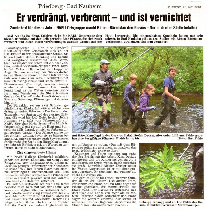 Artikel der WZ vom 13.05.2013 über die Eindämmung des Riesen-Bärenklaus