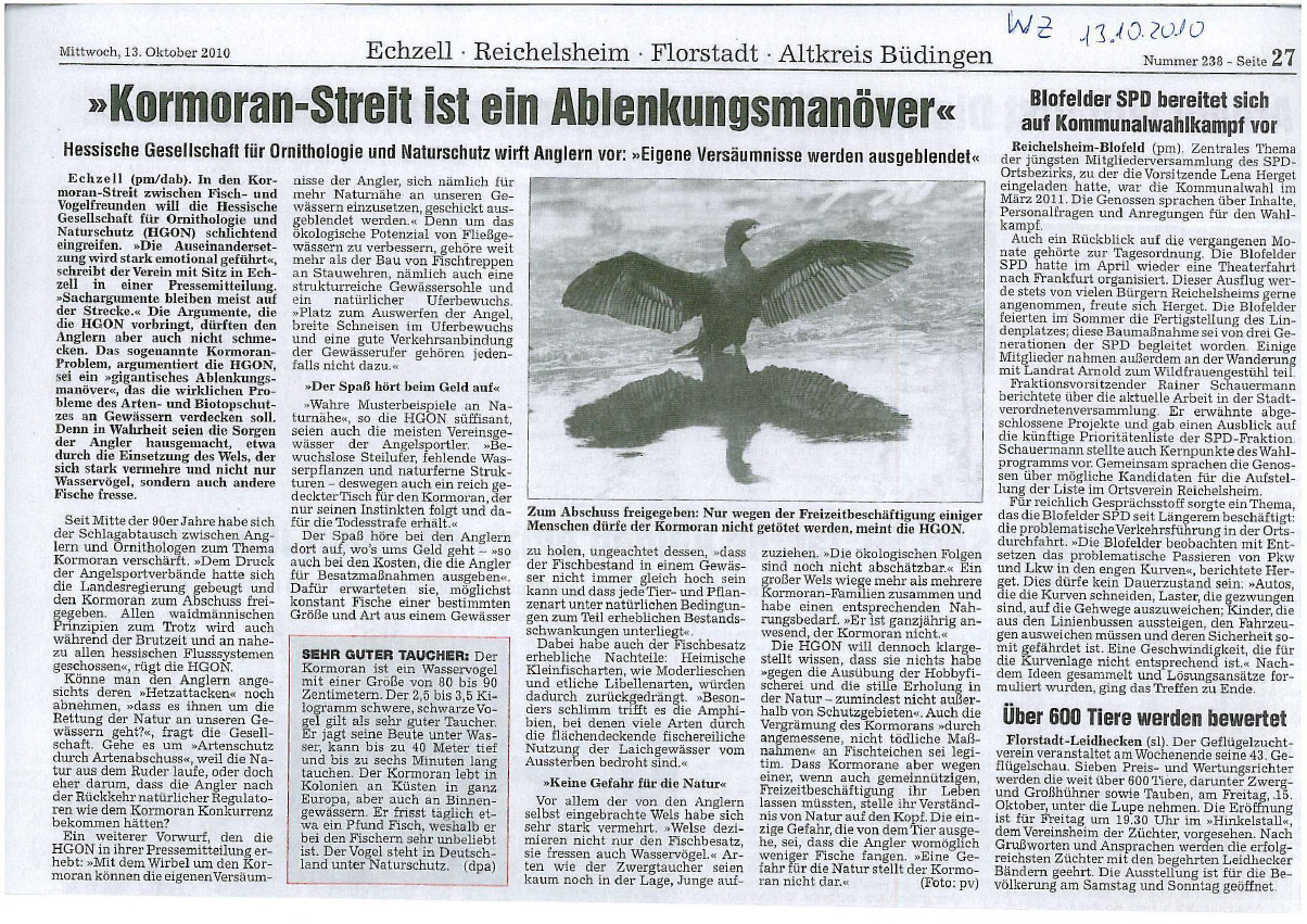 der Hessischen Gesellschaft für Ornithologie als Reaktion vom 13.10.2010.